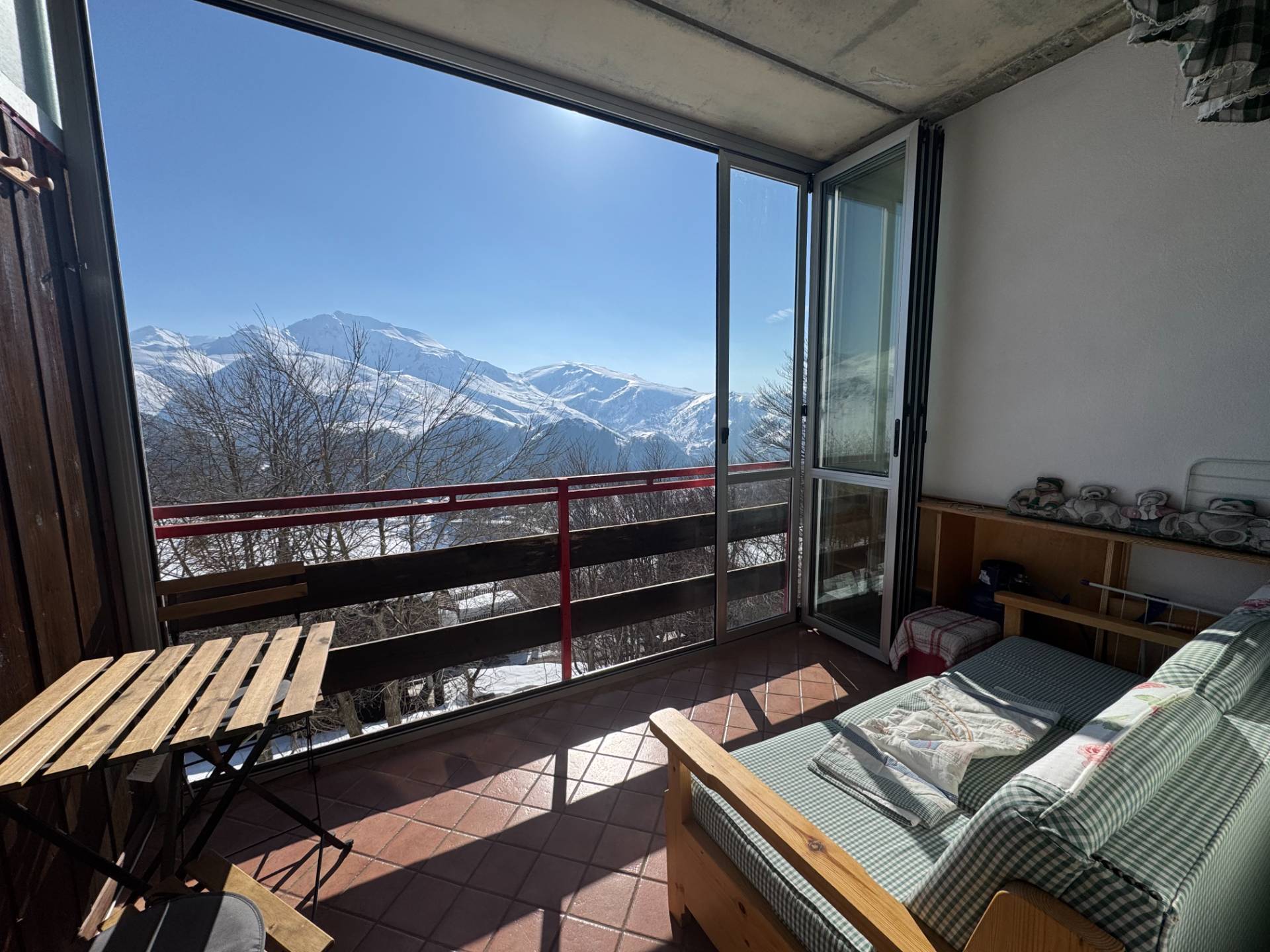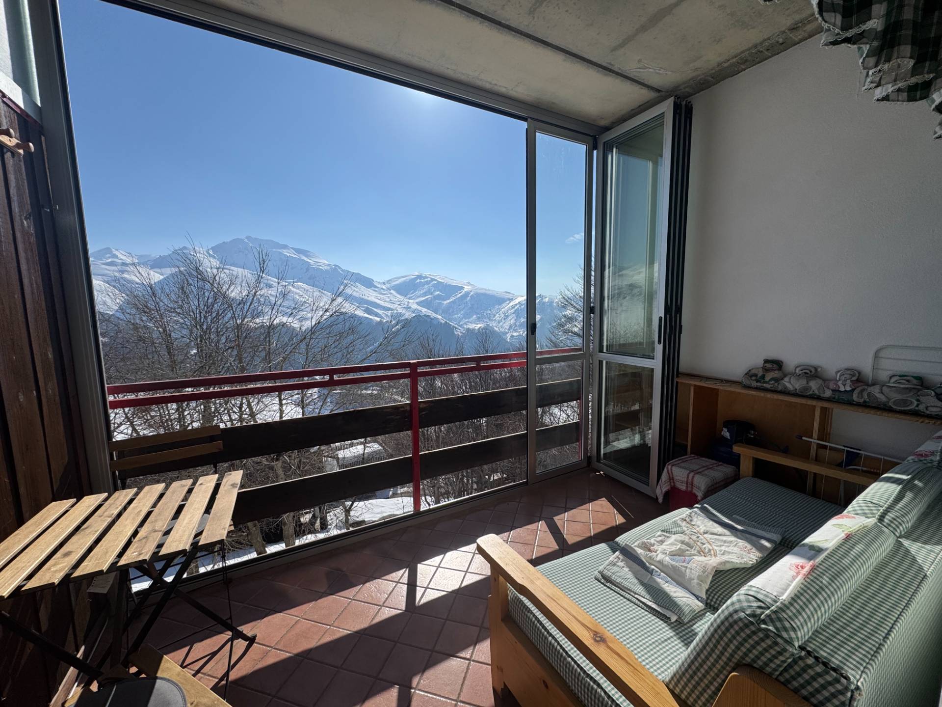 L'immobile si presenta in ottime condizioni ed è composto da ingresso su soggiorno con angolo cottura, ambiente ben distribuito e funzionale, arredato in modo da ospitare comodamente fino a 4 posti letto, bagno. Dal soggiorno si accede al balcone, vero punto di forza della proprietà, da cui si gode di una splendida vista panoramica aperta sulle montagne circostanti.